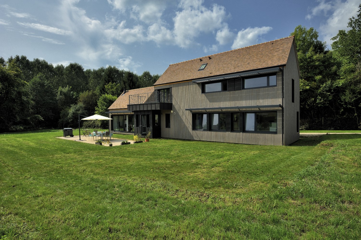 Le projet se dresse sur une parcelle boisée. Une habitation composée de plusieurs bâtis et dépendances se trouve sur le terrain, bricolage architectural entre différentes formes...